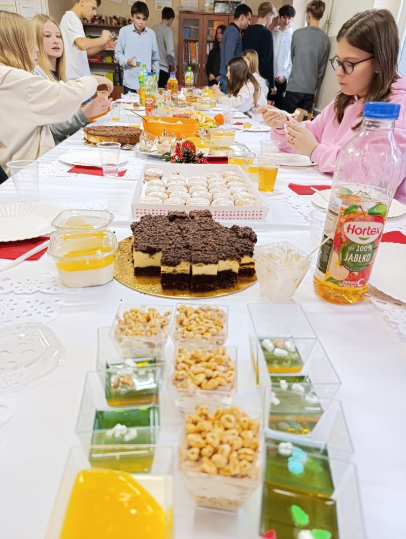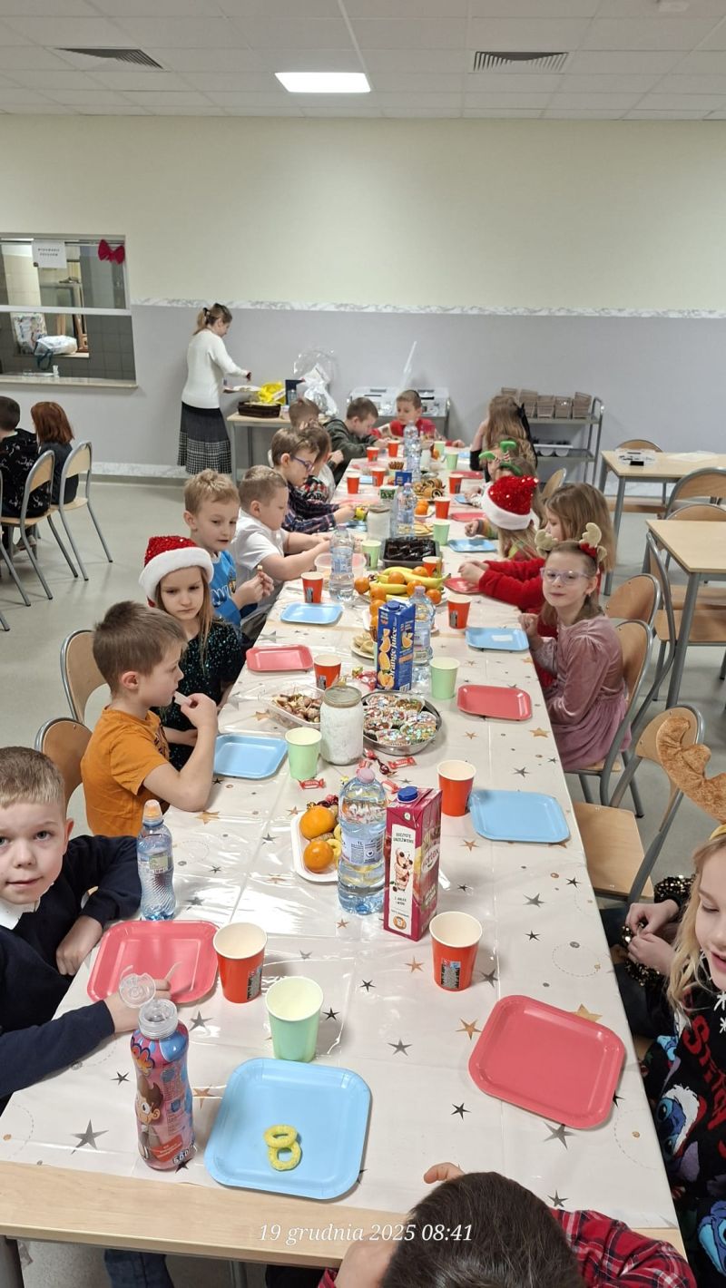 19 grudnia 2025 r. to ostatni dzień zajęć lekcyjnych przed przerwą świąteczną. Uczniowie wraz z wychowawcami, spotkali się na klasowych wigiliach. Był opłatek, były kolędy i tradycyjne potrawy. W końcu, był też czas na wspólne rozmowy. Sale lekcyjne był tego dnia gwarne i wesołe. Wigilie 2025